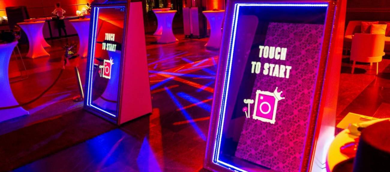 Fotos mit lustigen Filtern bearbeiten und Signatur nicht vergessen – ganz einfach mit dem Finger direkt auf dem Spiegel! So interaktiv war noch keine Fotobox...
