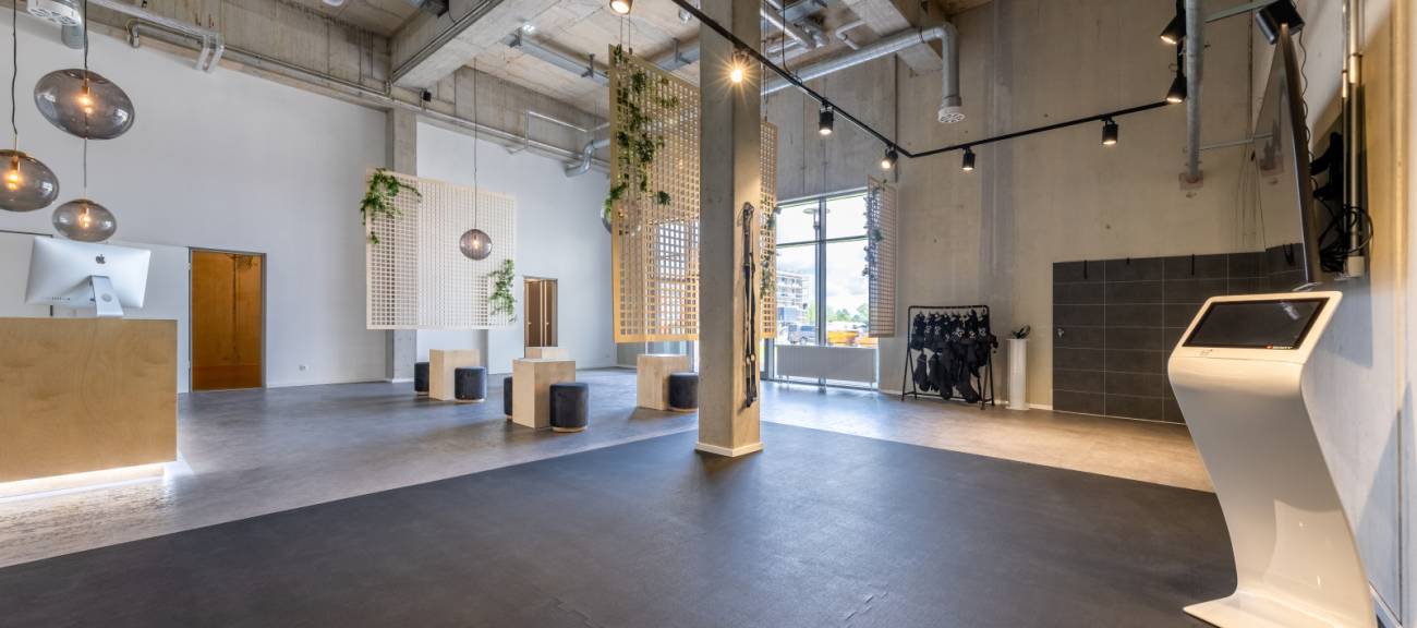 Der Ansatz für diesen großzügigen Raum war es, ihn flexibel für verschiedene Arten von Veranstaltungen und Kunden zu halten. Die installierten abgehängte Holzgitter, die die Höhe des Raumes hervorragend nutzen und den Raum optisch in verschiedene Aktivitätsbereiche trennen.