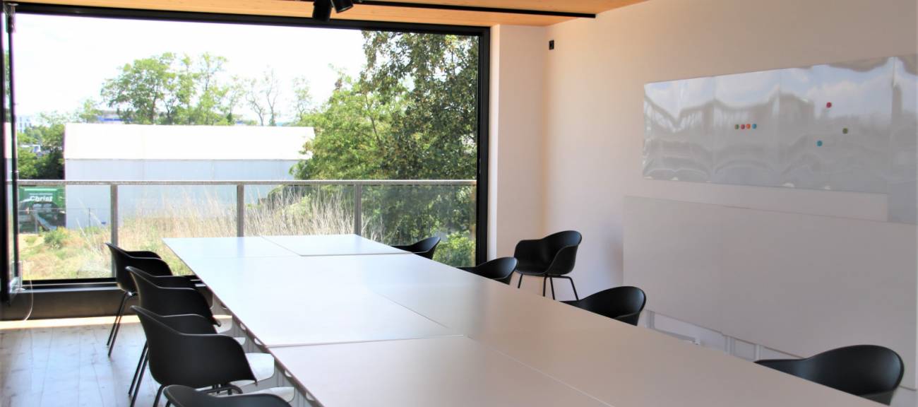 Mit komplett zu öffnenden Fensterfronten genießt ihr während eures Meetings, eurer Tagung oder eurer Teamrunde den Ausblick und die frische Luft. Modernes Design, liebevolle Details und die Co-Working Atmosphäre sorgen für einen kreativen Austausch.