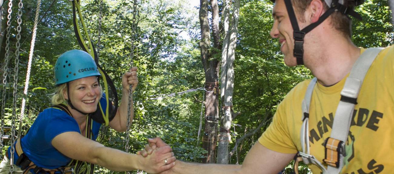 Die Location für euren nächsten Betriebsausflug in Wiesbaden. Der Kletterwald auf dem Neroberg ist einer der großten Hochseilgärten in Europa. 18 große Parcours - vom Kinderparcours bis zum superschweren Treeman-Parcours - führen zwischen uralten Eichen und Buchen von Baum zu Baum. Die Übungs- und Kinderparcours starten in 1,5 m Höhe, der höchste Parcours führt in die Baumwipfel bis auf 24m Höhe.