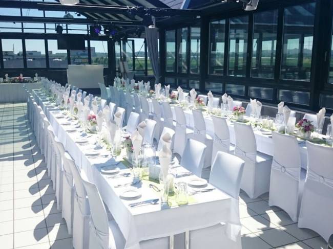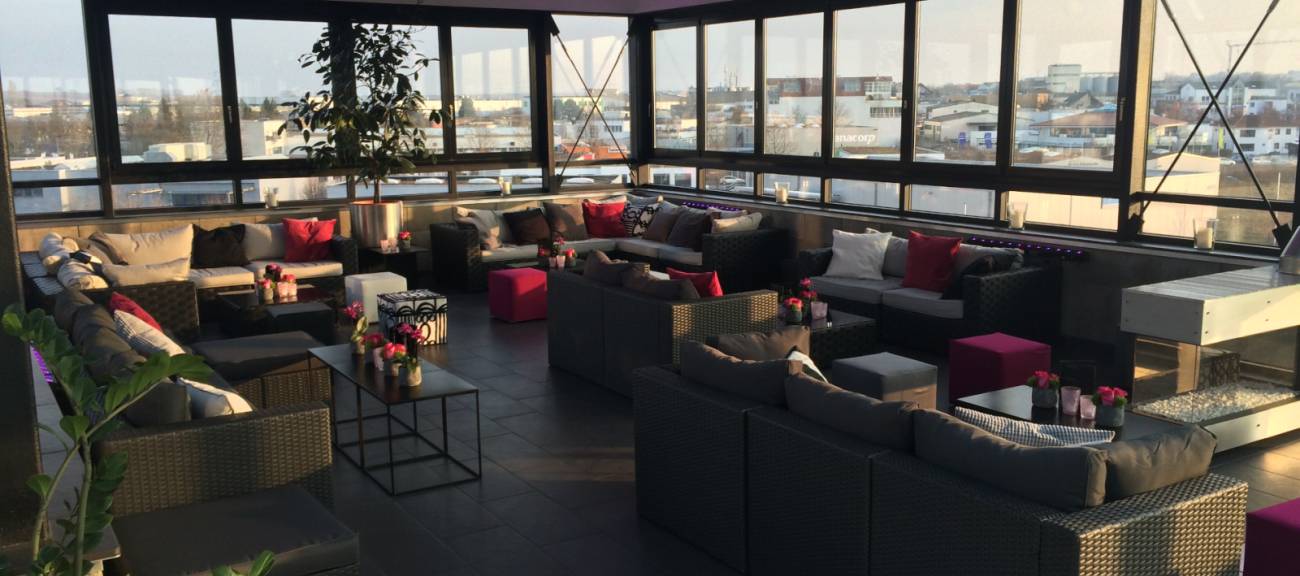 Auf 12m Höhe befindet sich das Panorama 250 der Pyramide Mainz – eine vollverglaste Dachterrasse mit Blick in den Taunus. Bei Sonnenschein oder Regen, durch das über 80m² zu öffnende Cabriodach ist die Location ideal bei jeder Wetterlage.