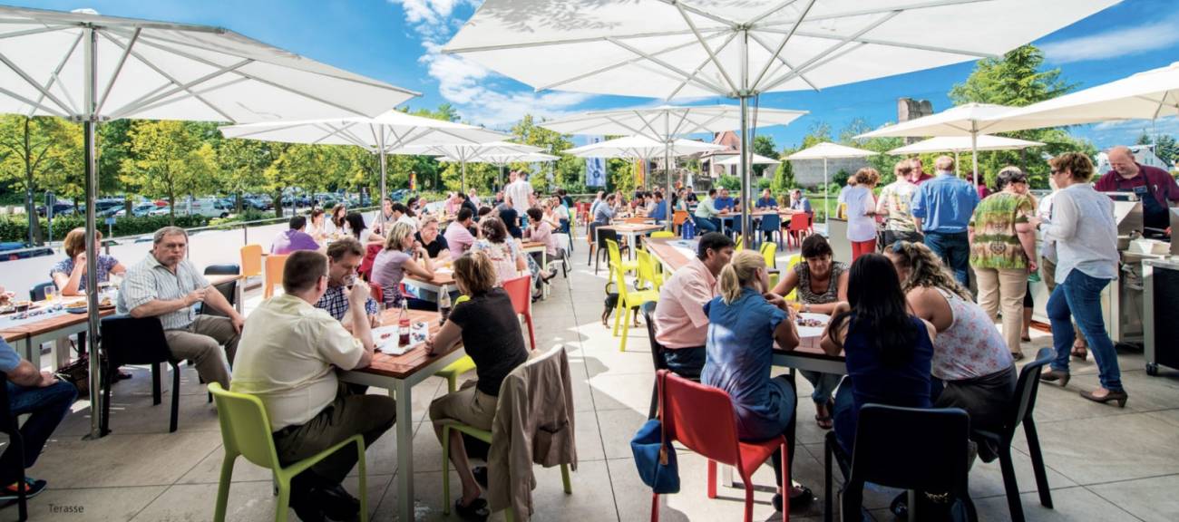 Die Terrasse bietet Platz für bis 100 Personen - je nach Bestuhlungsart.