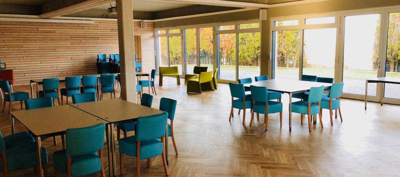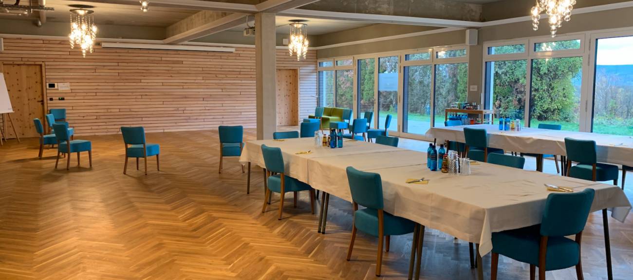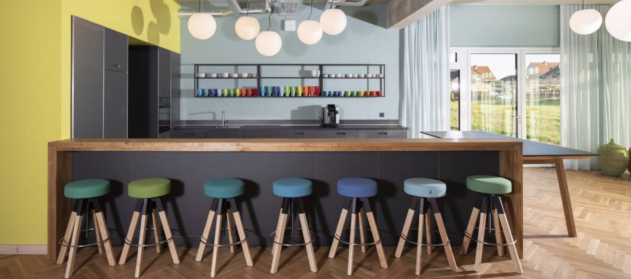 Die Location in Wackernheim besticht durch eine sehr hochwertige Ausstattung und ein stilvolles Ambiente, welches sich an der modernen alpinen Architektur orientiert. Die Kombination von Zirben-Holz und Beton, gepaart mit farbigen Designermöbeln und modernen Materialien wie Glas und Stein schaffen eine besondere Umgebung, in der Gruppen bis zu 110 Personen kreativ arbeiten und konzentriert kommunizieren können.