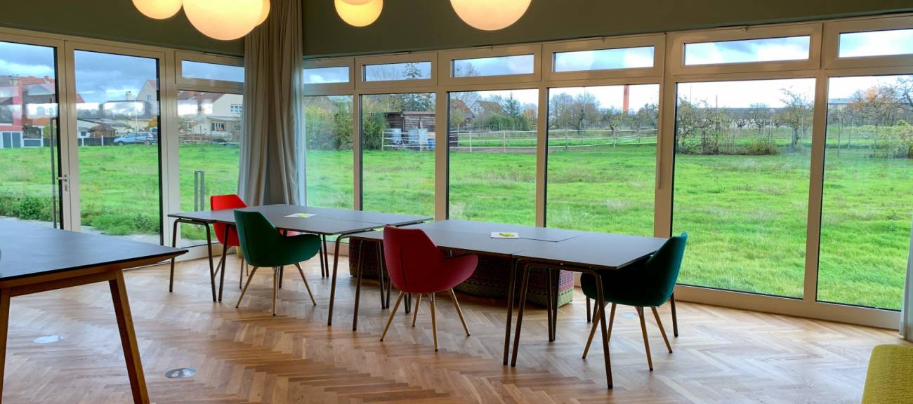 Eventlocation mit kreativer Loft-Atmosphäre für Tagungen, Meetings, Workshops, Seminare & mehr. Platz für bis zu 110 Personen. Zentral zwischen Mainz und Ingelheim.