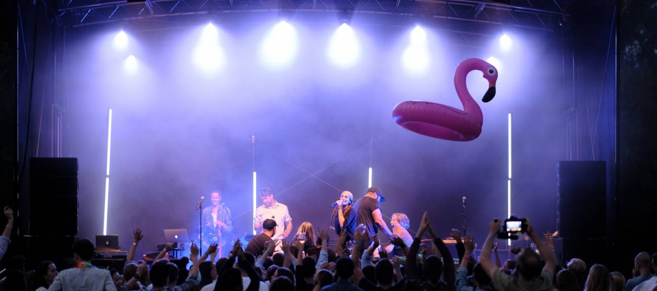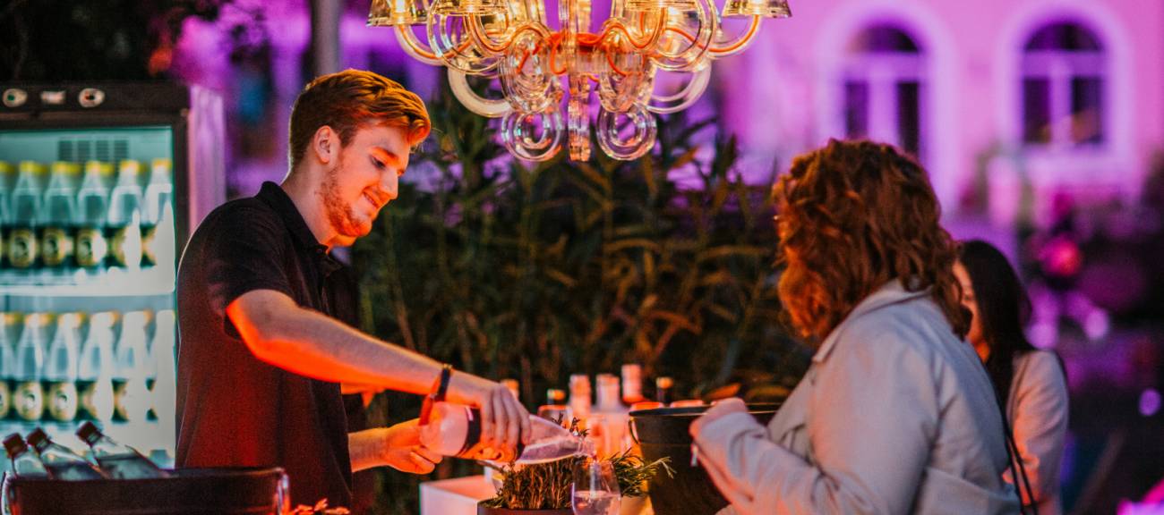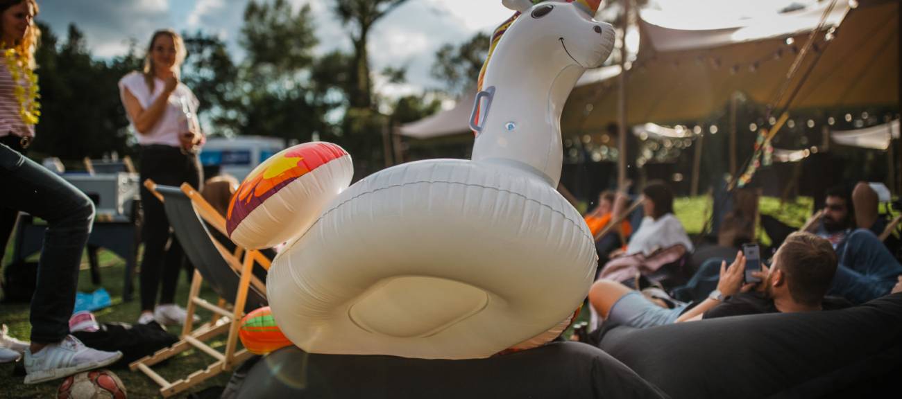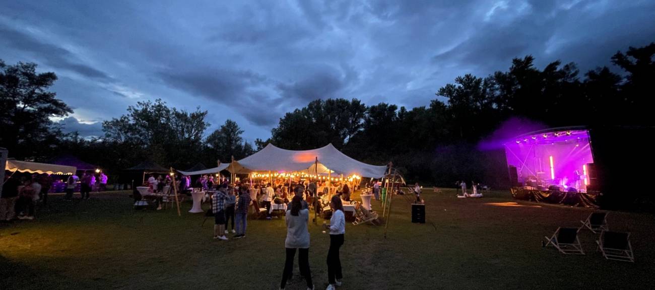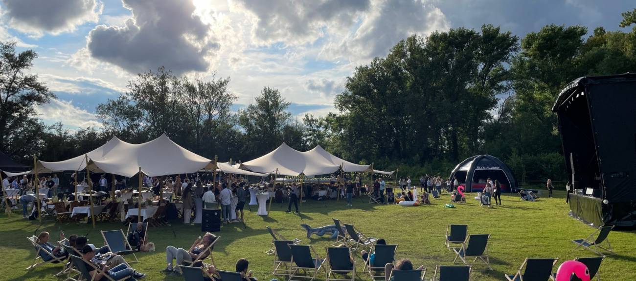 Große Stretchzelte bieten ausreichend Schatten und Wetterschutz, nach dem Tanzen kann in lässigen Liegestühlen und Sitzsäcken gechillt werden. Das Hofgut Insel Nonnenau ist der perfekte Ort für das Wiedersehen mit Kollegen und Mitarbeitern mit geselligen Gespräche an Bier- und Stehtischen und leckerem Streetfood-Catering von regionalen Dienstleistern.
