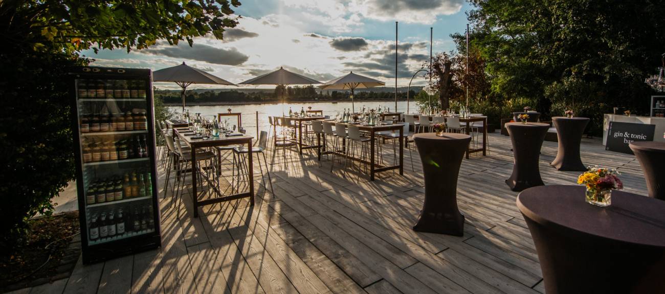 Nach dem Festival ist vor dem Sundowner - die Rheinterrasse mit dem Sonnendeck des Hofguts Nonnenau "is the place to be" wenn es um den Aperitif zum Sonnenuntergang, dem Dinner und der Abendveranstaltung geht.
