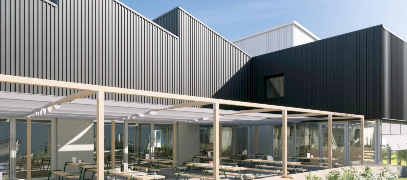 Sie bildet das Herz des Campus und bietet Platz für Kommunikation & Genuss für bis zu 450 Personen. Die große Außenterrasse auf der Plaza ist ein kreativer Austauschort für alle.