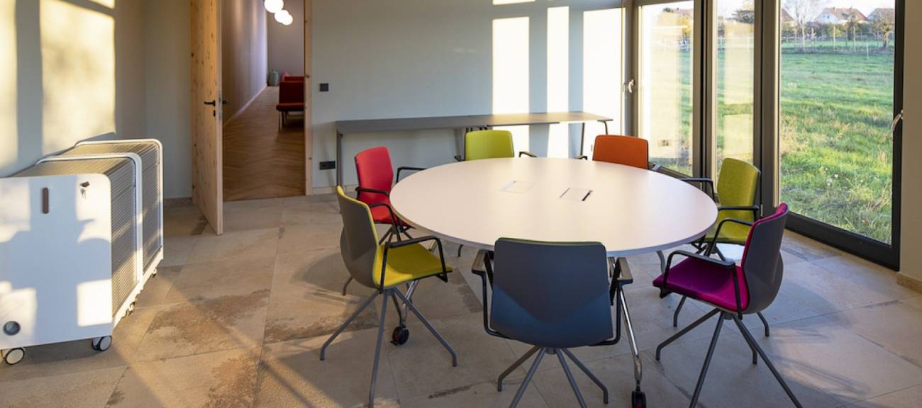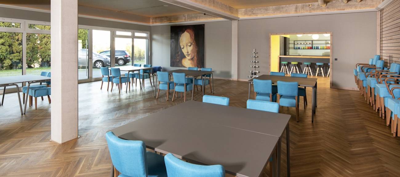 Euch stehen 1 Whitebaord/Pinwand und 1 Flipchart zur Verfügung. Außerdem 2 Mikrophone und natürlich Beamer und Leinwand. Weiteres Equipment, wie ein Redenerpult, oder weitere Flipcharts etc können hinzugemietet werden. Zudem könnt ihr den Eingangsbereich inklusive Loungebereich und offener Küche perfekt für eure Break-Outs und die Lunchpause nutzen. Die 2 sepraten Konferenz-/ Gruppenräumen stehen euch für kleine Gruppenzusammentreffen zur Verfügung. Die vollflächigen Fensterfronten sorgen für das nötige Tageslicht und der Weitblick über die Felder sorgt in den Pausen für das gewünschte "abschalten".
